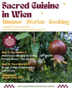 - Cooking Classes: We’ll guide you through a number of Somi Palestinian dishes as well as some of Chef Izzeldin’s own creations. Learn to prepare delicious vegetarian/vegan meals like Maqluba and Musakhan, while delving into the history behind each dish.